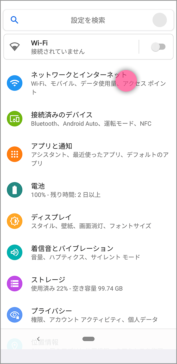 ソフトバンク・ワイモバイルで購入したAndroid端末の場合、通信をするための設定(APN設定)が自動で行われます。