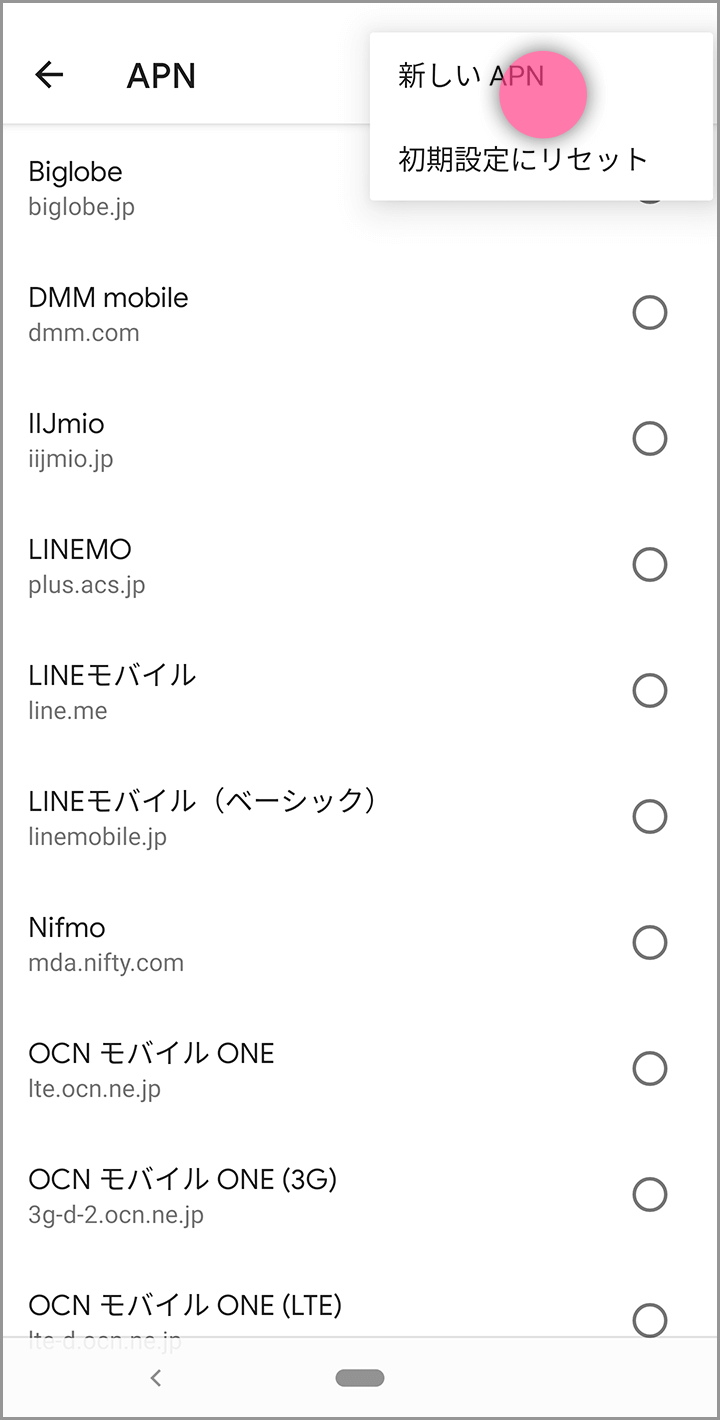 メニューから新しいAPNを選択してください。