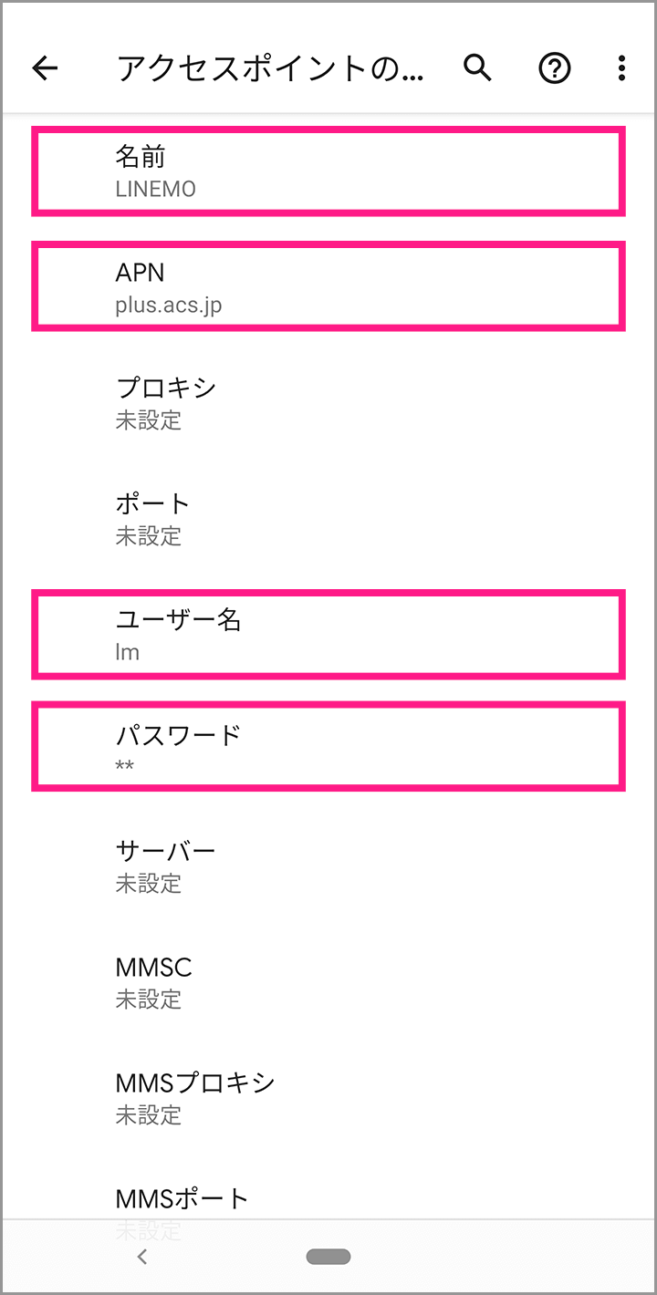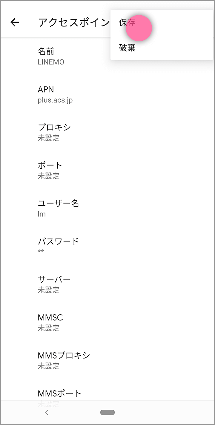 APN一覧から先ほど保存したLINEMOのAPNを選択してください。