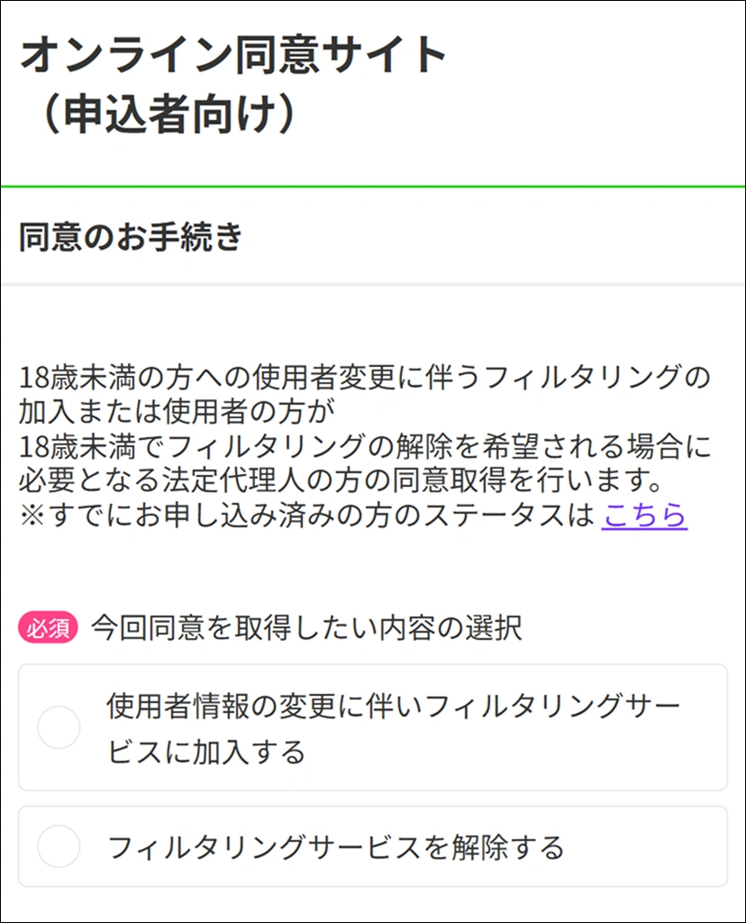 オンライン同意のご利用にあたり、以下の注意事項の確認と、法定代理人の方へ事前のご連絡をお願いします。