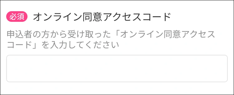 専用サイトにアクセスしましたら「オンライン同意アクセスコード」を入力し、内容をご確認ください。